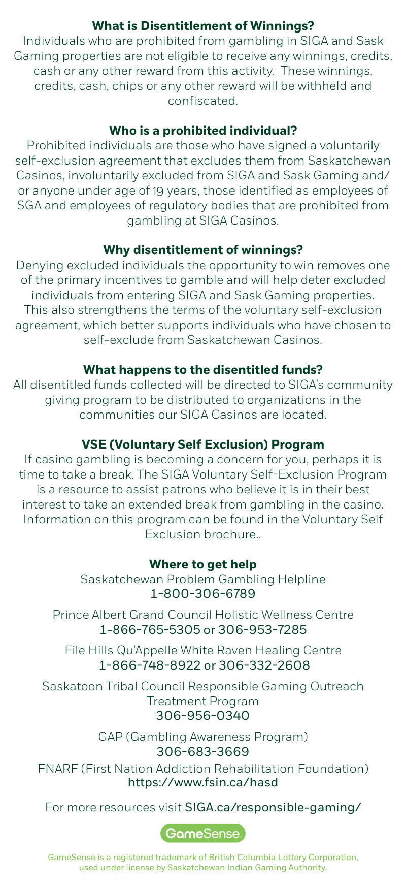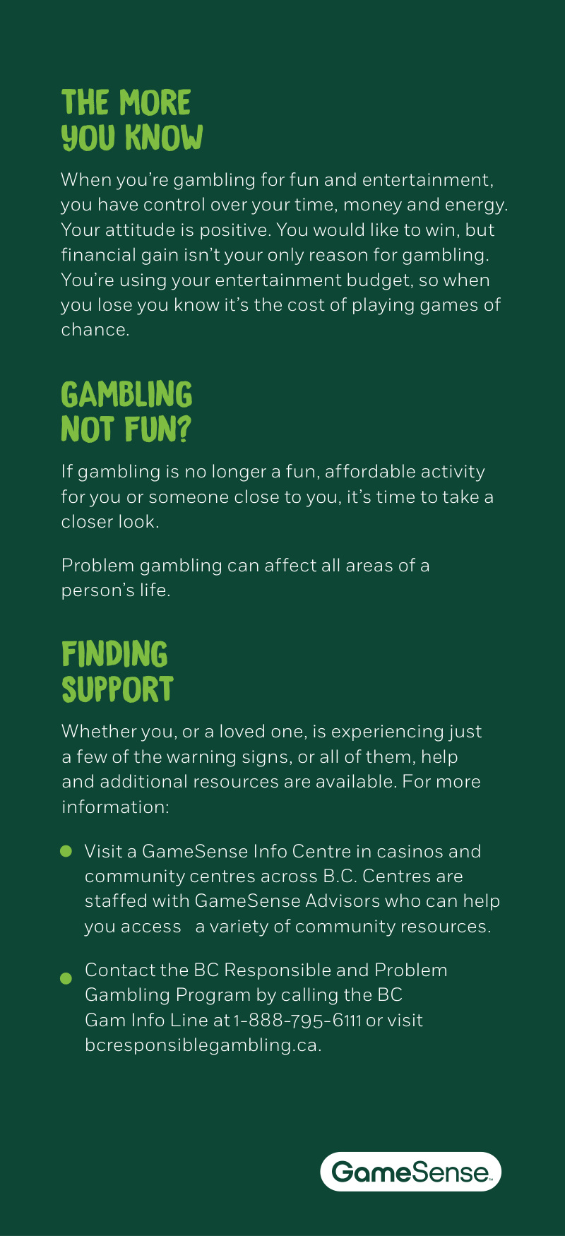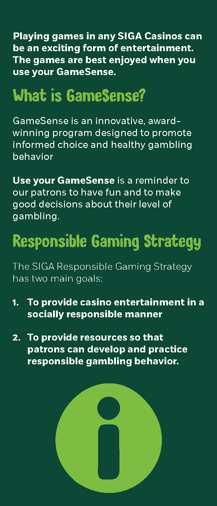 RESPONSIBLE GAMING BROCHURES