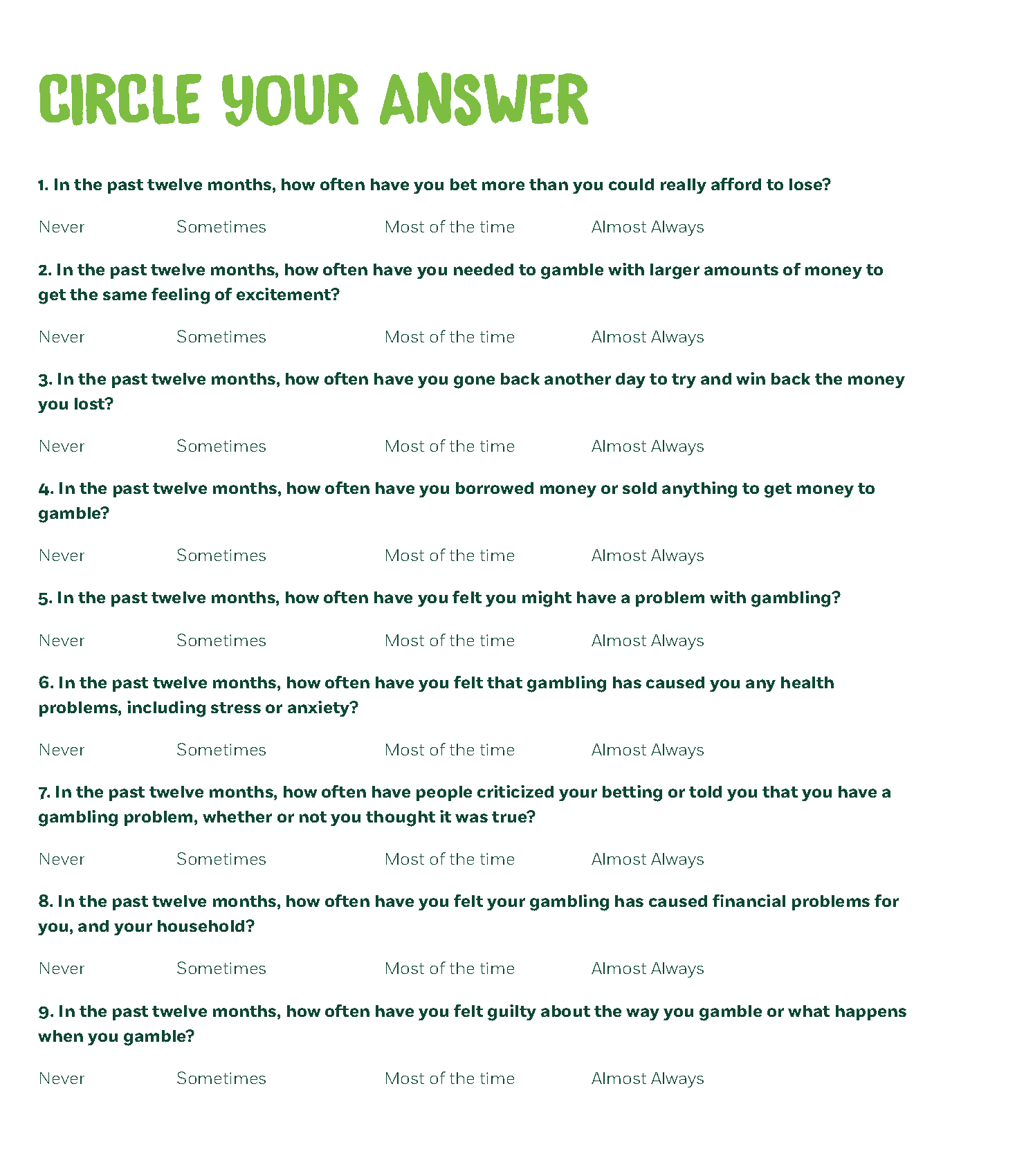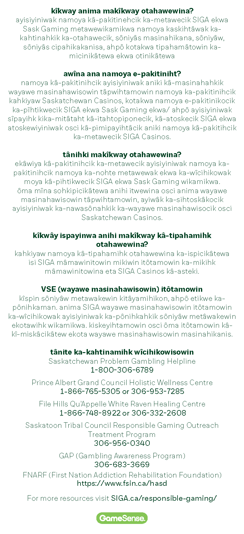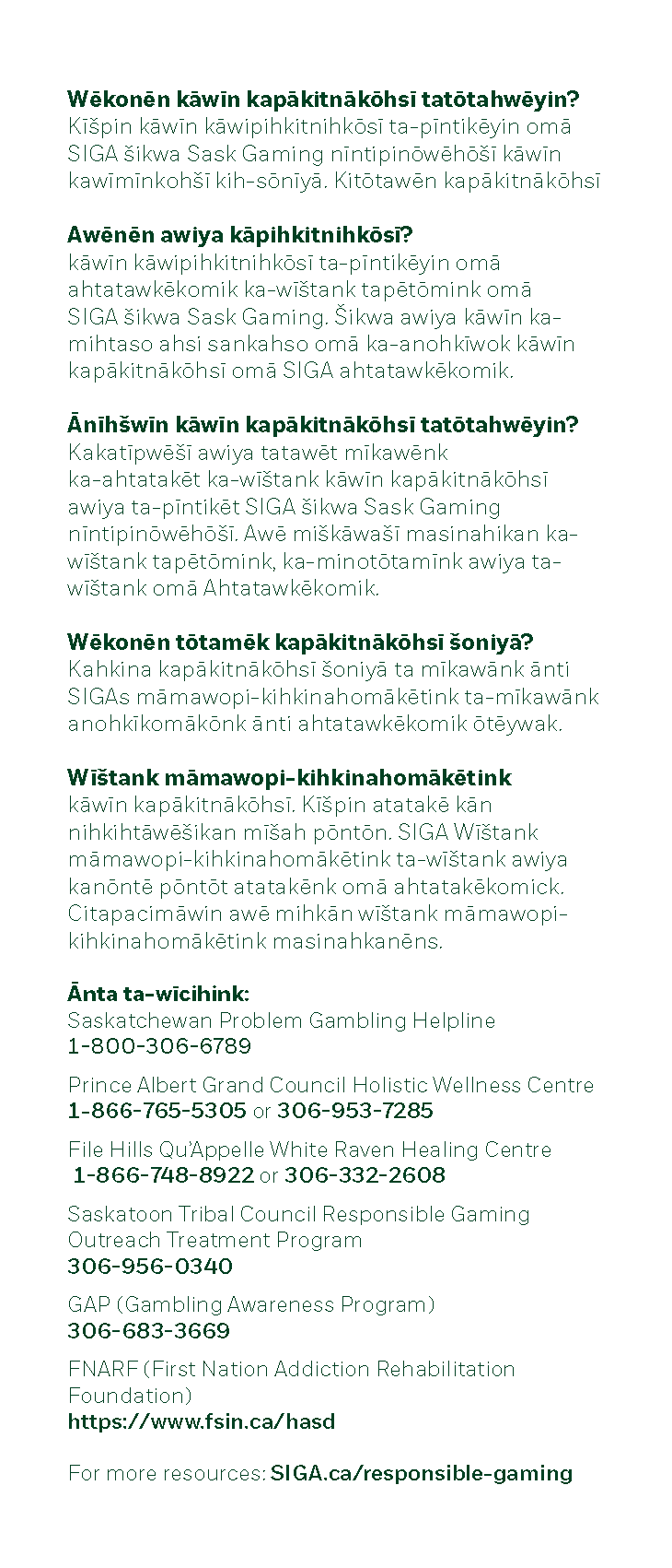 RESPONSIBLE GAMING BROCHURES