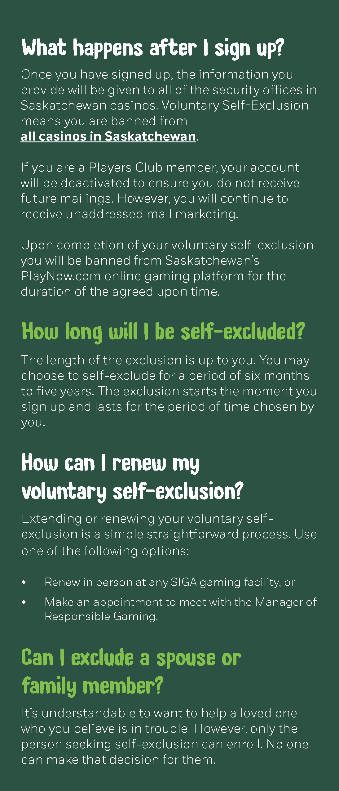 VOLUNTARY SELF-EXCLUSION