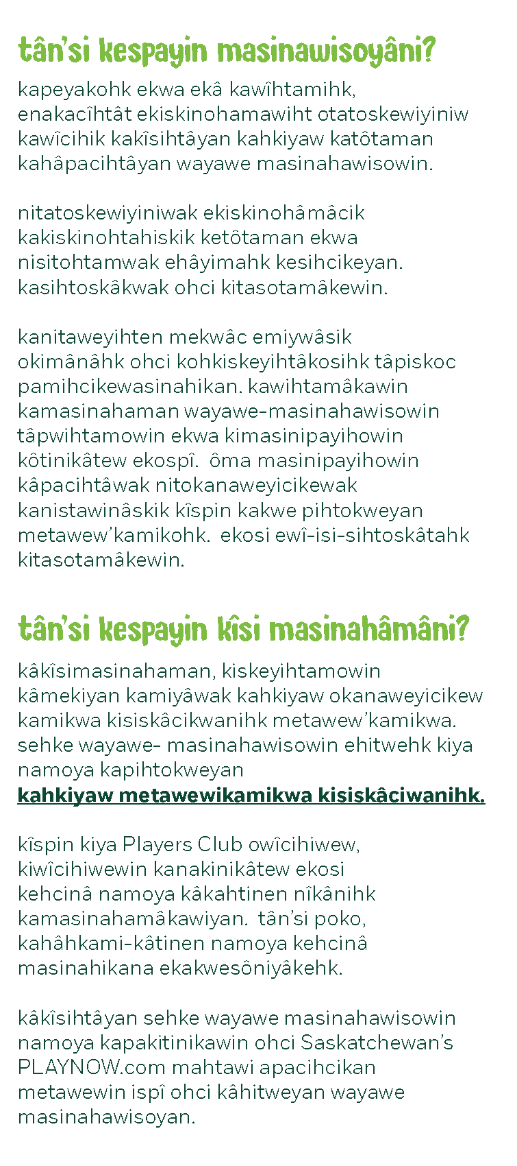 Click the button below to view the full brochure in English, Cree, Dene, or Saulteaux