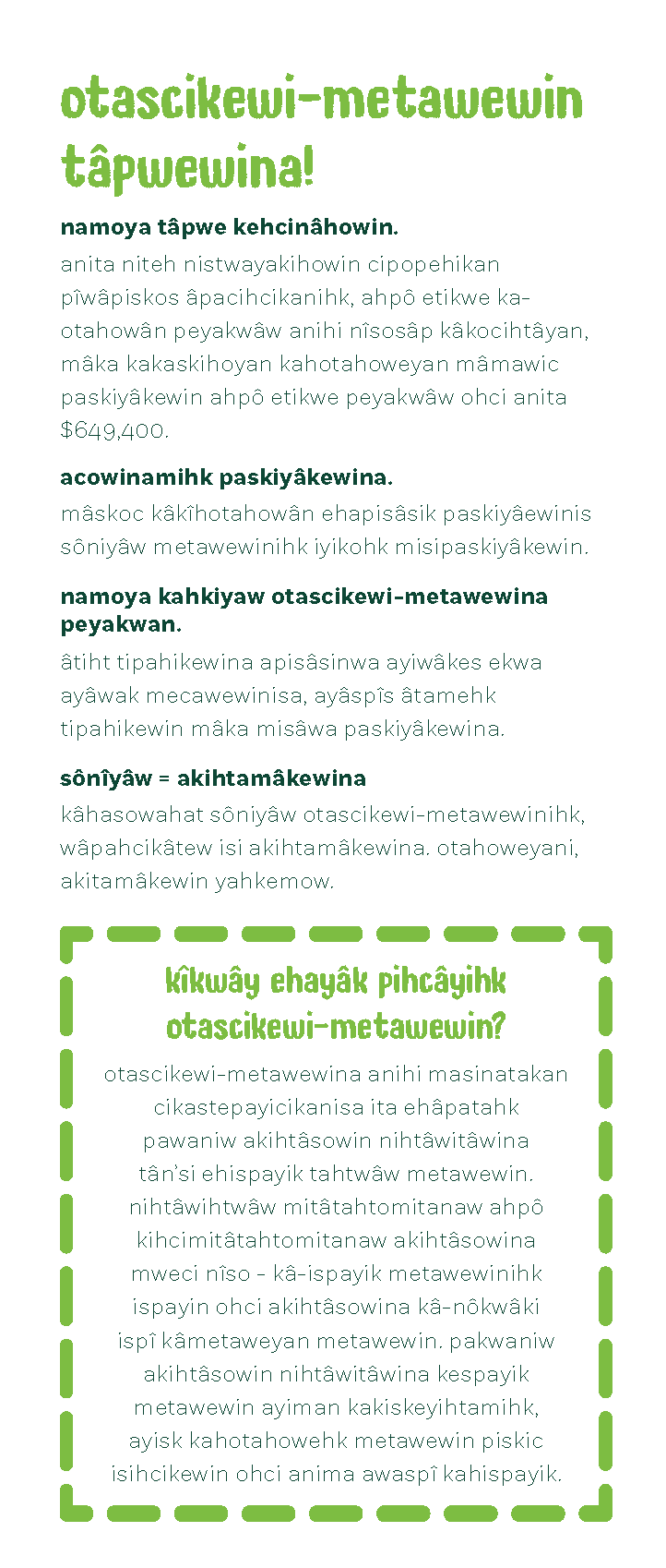 Click the button below to view the full brochure in English, Cree, Dene, or Saulteaux